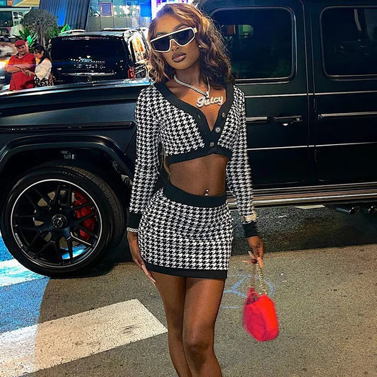 Plaid Mini Skirt Sexy Two-Piece Set Crop